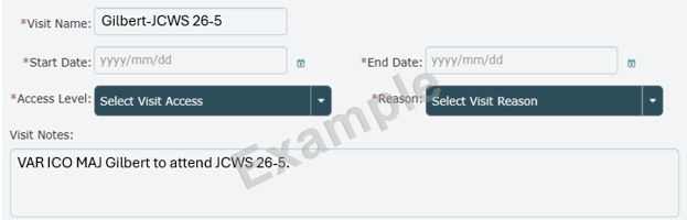 - Active-Duty Military Students on PCS orders are not required to submit a visit request.