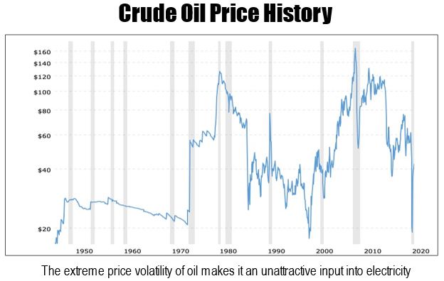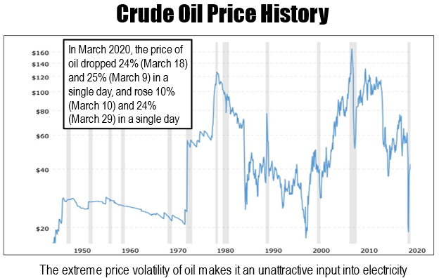 Oil has been a problem for a long time in terms of volatility. This shows you how dramatically the price of oil changes and this, by the way, is why we prefer not to use it in electricity because it's so volatile that it makes it really hard to do that minute-by-minute input into a grid that we have to do in order to produce electricity (refer to Figure 12).